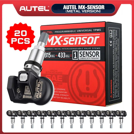 Autel MX-Sensor 20 Pack, 315MHz & 433MHz 2in1 Tire Pressure Sensors Programmable Universal Screw-in Rubber Stem Tire Sensor
