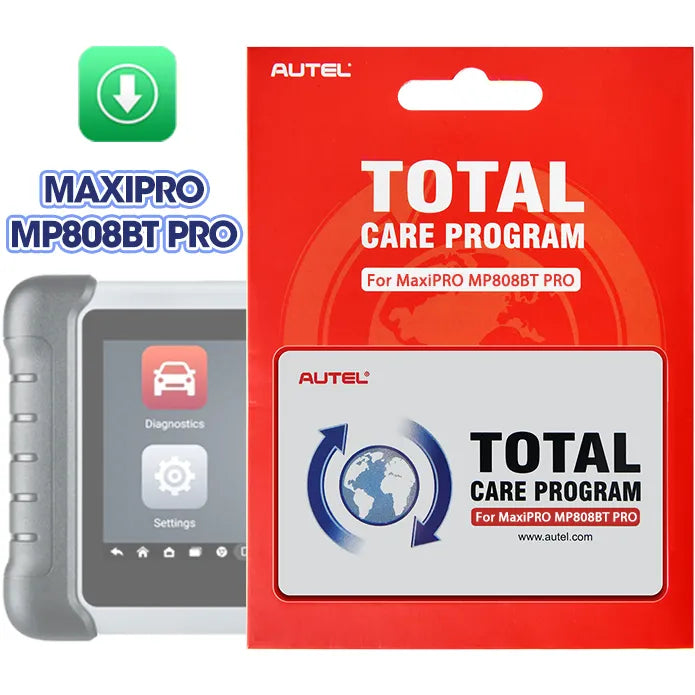 The orginal MaxiPRO MP808BT PRO Diagnostic Scanner include 1 Year FREE software updates and 1 Year warranty. After the initial year expires, you may purchase an additional 1-Year Update Service to upgrade your tool to latest software version to cover lates vehicle coverage and functions.